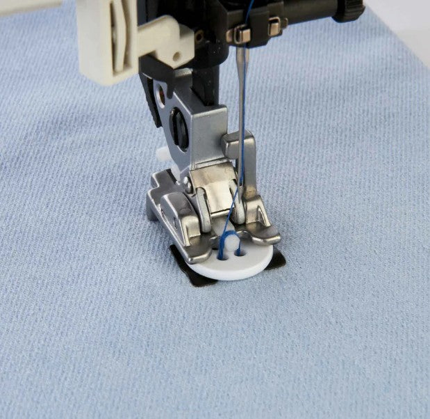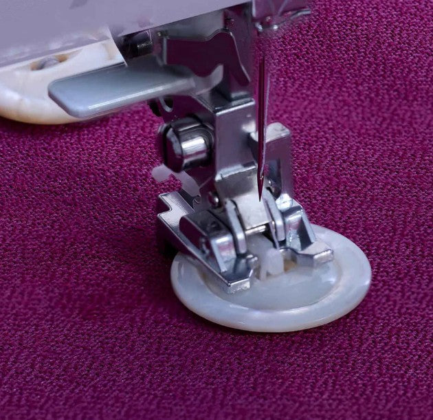 Foden holder knappen stabilt på plads, mens du syr, så du får ensartede og stærke sting, uden at knappen flytter sig.